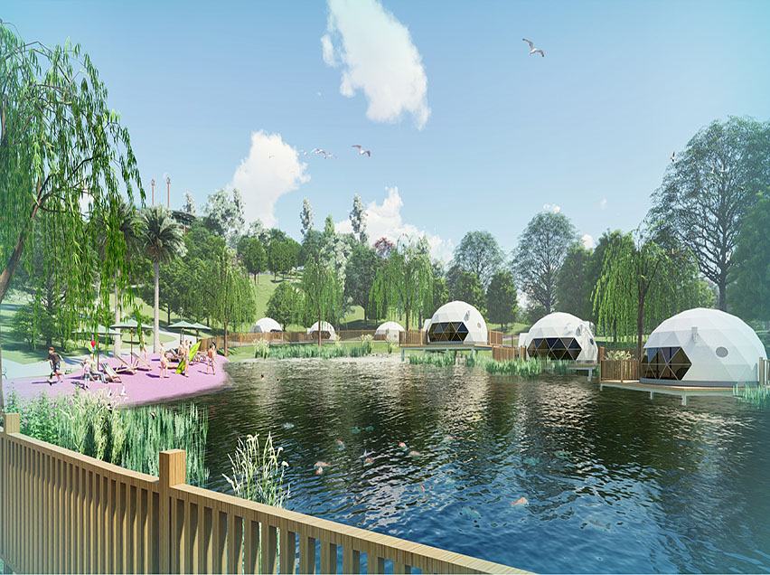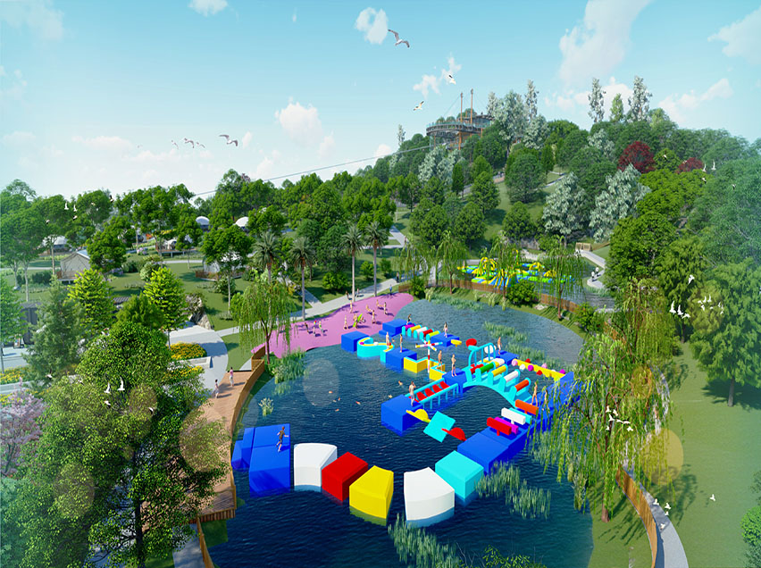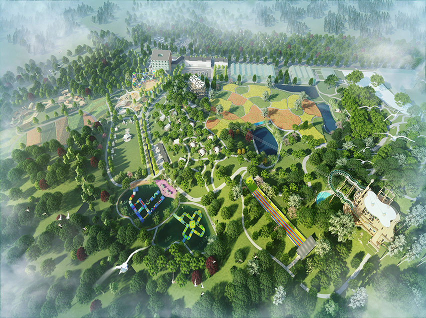 1.項(xiàng)目主要依托山、湖、林、田構(gòu)成的自然景觀,利用原有路網(wǎng)點(diǎn)狀布局休閑游樂項(xiàng)目,通過引進(jìn)云娛綜合體、鉆石塔、叢林穿越、萌寵樂園、勞動實(shí)踐基地等20余個游樂項(xiàng)目。
