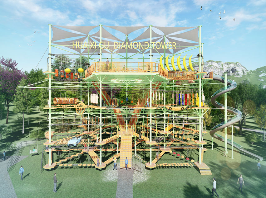 鉆石塔是一個立體探險娛樂綜合體,景區(qū)地標(biāo)性運(yùn)動游樂項(xiàng)目。包含尖叫滑梯、低空蹦極等,能滿足150個游客同時進(jìn)行冒險體驗(yàn),適合熱愛挑戰(zhàn)極限的人群,也可以實(shí)現(xiàn)企業(yè)團(tuán)隊(duì)建設(shè)、領(lǐng)導(dǎo)技能培訓(xùn)、凝聚團(tuán)隊(duì),通過豐富的體驗(yàn)帶給游客一個全天的刺激享受。被譽(yù)為運(yùn)動游樂之王。